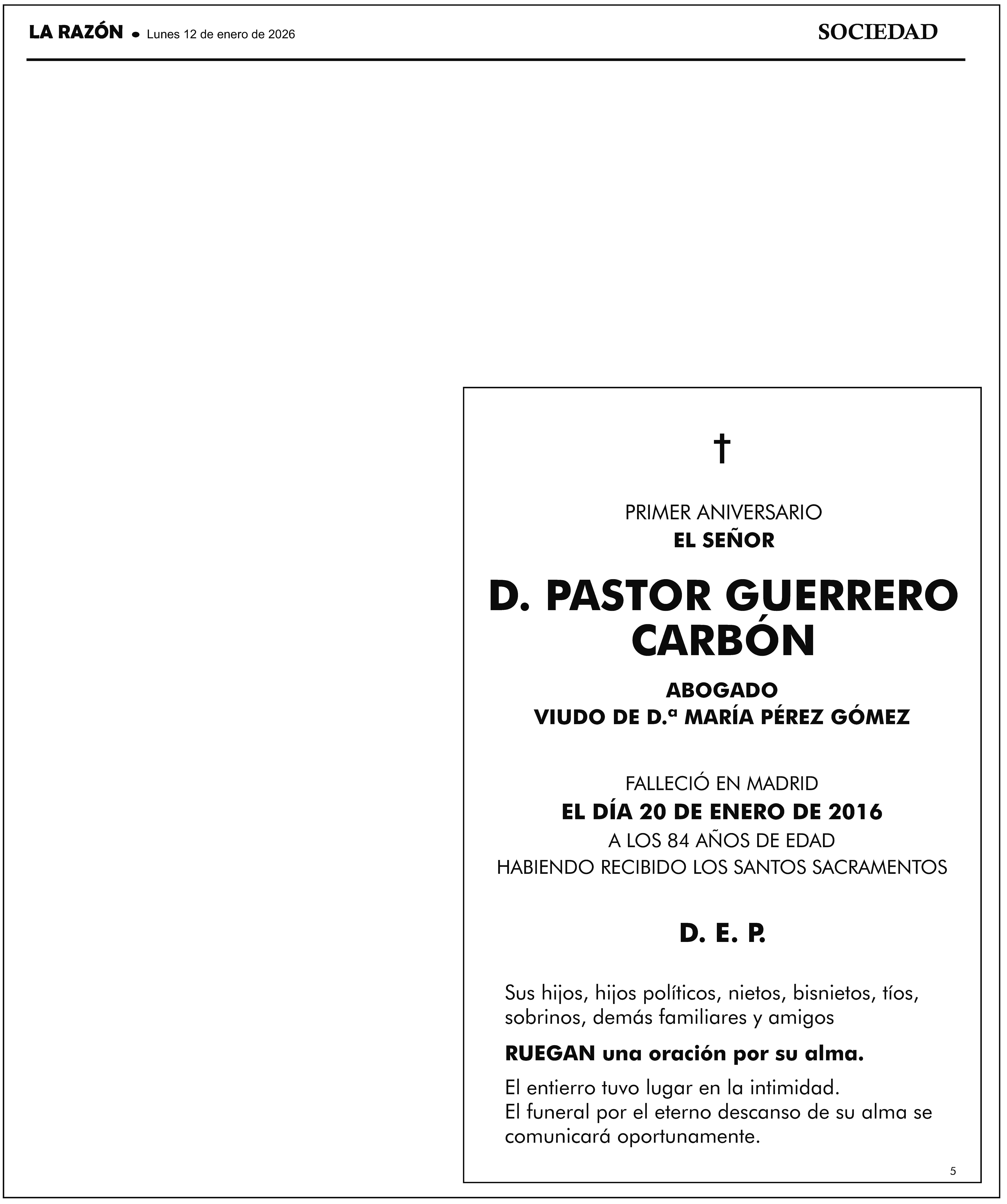 Llámenos para Publicar Esquelas en La Razón